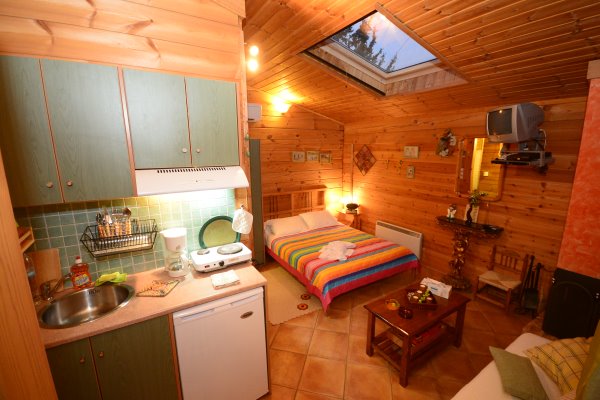 Κοντά στο Καρπενήσι και το χιονοδρομικό κέντρο, με πολλή αγάπη και μεράκι, μέσα σ’ ένα χώρο 5 στρεμμάτων εκ των οποίων τα 3 στρέμματα καλύπτονται από γκαζόν και λουλούδια, κατασκευάσαμε 4 φιλόξενες ξύλινες μεζονέτες. Είναι εξοπλισμένες με τζάκι, καθιστικό, λειτουργική κουζίνα, μπάνιο με Jacuzzi, τηλεόραση, NOVA, DVD, RADIO CD. Τις αστραπές που διακοσμούν τον ουρανό το χειμώνα, τα ολόγιομα φεγγάρια του καλοκαιριού και τα ζωντανά καιρικά φαινόμενα μπορείτε να απολαύσετε από τα παράθυρα στέγης που διαθέτουν τα σαλέ. Επίσης παρέχεται αυτόνομη θέρμανση – ψύξη στα δωμάτια.